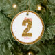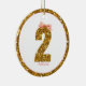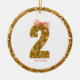 Pink Bow Gold Glitter Two 2nd Birthday Ceramic Ornament