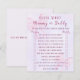 Add a fun and interactive touch to your celebration with this “Guess Who: Mommy or Daddy” game card. Designed in a soft coquette style with delicate pink bows and pastel purple accents, it blends perfectly with your baby shower theme. Guests will love guessing who said what, creating laughter and memorable moments for everyone.