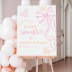 Welcome your guests in style with this charming Baby Sprinkle welcome sign. Featuring a large elegant pink bow, sprinkled heart details, and a modern blush and peach color palette, this sign perfectly sets the tone for your Sprinkle Bow Hearts baby shower. A sweet and feminine touch to greet friends and family as they celebrate the mom-to-be.