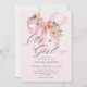Pink Bow Its a Girl Floral Baby Shower Invitation