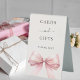 A soft ivory colored background, decorated with a large pink bow. Text: Cards and Gifts. Thank you!