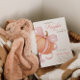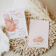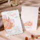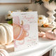 A sweet baby girl shower invitation featuring a soft pastel pumpkin topped with a pink coquette bow. Designed with elegant calligraphy and a minimalist layout for a chic fall celebration.