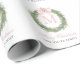 Add a charming touch to your holiday gifts with this personalized wrapping paper featuring a delightful watercolor wreath design with a monogram. The festive green Christmas wreath, adorned with a beautiful pink bow will bring a playful yet elegant feel to your holiday wrapping.