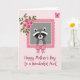 Designed with a soft, romantic touch, this card features a framed portrait set on a calm pale pink background. In the center, a cute woodland animal with dark eye markings and a bright white muzzle smiles gently, giving the scene a friendly, affectionate feel ❤️. The portrait sits inside a rich pink frame with a ruffled, fabric-like edge that looks cozy and gift-like. At the upper left of the frame, a small cluster of pink blossoms with green leaves leans inward as if tucked there by someone thoughtful 🌼. Below the portrait, a neat pink bow with thin white outlining is centered, like a ribbon tied with care. The message text appears beneath the artwork in darker pink, flowing lettering, aligned neatly under the frame. Near the upper right, a single pale pink butterfly floats against the background, adding a light finishing detail.