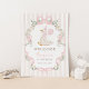 Featuring a whimsical watercolor goose in a party hat, delicate pink ribbons, florals, and soft pastel stripes, this welcome sign is perfect for a sweet and silly celebration. The elegant yet playful design is ideal for spring birthdays, garden parties, or any cheerful first birthday gathering.