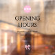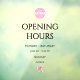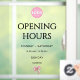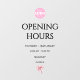 Simple and cute opening hours logo window cling with a small pink bow for your small business. Illustrated and designed by Patricia Alvarez.