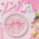Pink Bow Paper Plate With Plain Pink Backround