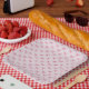 pink bow pattern Valentine's Day paper plates.