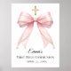 Create a beautiful first impression with this elegant First Holy Communion welcome poster, featuring a soft pink bow with delicate pearl details and a subtle gold cross. Personalized with your child’s name and date, it’s the perfect way to welcome guests to this meaningful celebration.