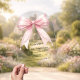 Pink bow pearls luxury First Communion arch Acrylic Invitations