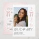 Celebrate her milestone with this pink bow graduation invitation featuring a soft coquette invite style and elegant bow details. The modern layout pairs a stylish photo with a delicate pink ribbon accent, perfect for a graduation daughter party with a trendy bow theme. Personalize with your photo, name, and event details to create a beautiful keepsake guests will love. Make your celebration unforgettable, personalize yours today.