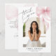 Share your gratitude in style with this elegant two‑sided pink bow graduation thank‑you card. The front features a clean, modern layout with a large airy pink bow and handwritten‑style “thank you” paired with your graduate’s photo and personalized details for a beautifully polished presentation. The back continues the refined aesthetic with a soft translucent bow and a heartfelt message, creating a warm and meaningful way to thank friends and family for their support. Perfect for sending after ceremonies, parties, or open houses, this design blends simplicity and sophistication for a memorable expression of appreciation.