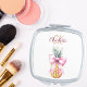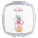 Pink bow pineapple tropical summer monogram compact mirror