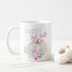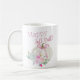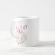 Pink Bow Pumpkin Happy Fall Y'all Coffee Mug with white pumpkin, pink bow and pastel floral leaves.