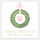 Pink Bow Sash Christmas Monogram Wreath Enclosure Square Sticker