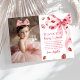 Pink Bow Strawberry Birthday Photo Thank You Card