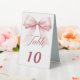 Personalize and your table numbers one by one. A white background decorated with a pink bow.