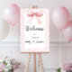 Celebrate the upcoming arrival of a sweet baby girl with this charming baby shower welcome sign foam board. Featuring a delicate pink and white floral toile background and elegant white edges, this invite is as lovely as the occasion itself. A soft watercolor bow crowns the top, while a playful, heart-accented font adds a whimsical touch. Feminine, graceful, and full of joy—this invitation sets the perfect tone for a shower filled with love and celebration. Created by Simply Farmhouse Press.