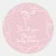 Pink bow wavy frame elegant girl shower thank you classic round sticker