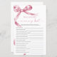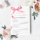 Pink Bow "Who Knows Mommy Best" Game – Add some fun to your baby shower with this charming game card featuring a delicate blush pink bow design. This "Who Knows Mommy Best" game is perfect for engaging guests and celebrating the mommy-to-be in style. With elegant script and feminine accents, this game card is a beautiful addition to any baby shower theme, making it a memorable keepsake for the mom and her loved ones.