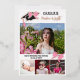 Girly graduation party invitation with girly pink bows and ribbon details, pink and matte black fonts, outlines and your daughter's name in rose gold foil and your daughter's photos. Girly graduation party invitation and graduation announcement in one, personalized with the graduate's photos on the cover and party invitation on the back with cute bow details in pink, the graduation cap adorned with a big pink bow.