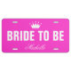 Pink bride to be license plate with personalized name. Cute gift idea for women or teenage girls ie bride wife mom mother sister etc. Also great for birthday, wedding, bridal or bachelorette party.