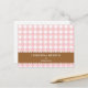 Pink brown gingham lined custom name recipe card