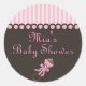 This modern customizable Baby Shower sticker features a pink rattle on a pink & brown striped background. Customize it by adding your details in the font of your choice!