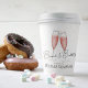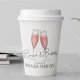 Celebrate the bride-to-be in style with this bridal shower themed disposable coffee cup, perfect for a chic brunch and bubbly event. Featuring soft watercolor accents, pink champagne tones, and elegant calligraphy script paired with modern typography, this custom party supply adds a stylish touch to your shower drinkware. Ideal for serving coffee, tea, or mimosas, this fashionable partyware brings both charm and convenience to your special celebration.