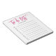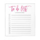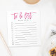 Chic personalized notepad features "to do list" at the top in vibrant tropical pink handwritten style brush lettered typography. Personalize with your name or choice of text beneath, or leave blank if desired. 10 lines with checkboxes help you keep track of all your important tasks!