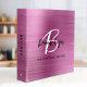 Pink Brushed Metal Black and White Monogram Recipe 3 Ring Binder