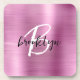 Pink Brushed Metal Black White Script Monogram Beverage Coaster