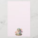 Stationery paper with an adorable image with a round shaped bunny standing outside it's egg-shaped house. Pastel colors and cherry trees add to the Japanese kawaii vibe.
