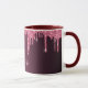 An elegant, girly and glamorous mug. Dark pink cherry colored faux glitter drips. Deep, dark moody burgundy gradient background. Personalize and add a name. The name is written with a modern hand lettered style script. Light pink colored letters.