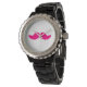 Pink Bushy Mustache Moustache Funny Angel Wings Watch