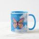 Pink butterfly blue handle mug