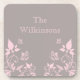 Sweet and dainty Butterfly Floral Coaster Set with a muted dusty gray background and light pink butterflies and floral vine embellishments. This elegant floral cork coaster set would complement any decor while protecting your furniture! Easy to customize, simply add the personalized text of your choosing in the text fields provided. Click on the "Customize It" button to find additional personalization options.