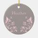 Sweet and dainty Butterfly Floral Ornament with a muted dusty gray background and light pink butterflies and floral vine embellishments. This elegant floral ornament is chic with girly flair and would make a lovely decorative gift! Easy to customize, simply add the personalized text of your choosing in the text fields provided. Click on the "Customize It" button to find additional personalization options.
