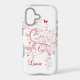 A delicate floral swirl in pink with pink and red butterflies on a white background makes a pretty case. Add your own name easily