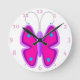 Pink Butterfly Round Clock