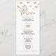 This is a pink butterfly themed bridal shower menu. The design consists of a pink butterfly and gold glitter theme.
