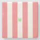 Pink Cabana Stripe & Personalized Green Monogram Stone Coaster
