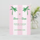 Pink Cabana Stripes Palm Tree Monogram Wedding Save The Date