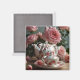 Pink Cabbage Rose Tea Magnet