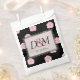 Pink Cabbage Roses and Black Lace Wedding Favor Bag