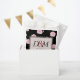 Big pink cabbage roses are splashed across a black background on this modern, romantic design. The center inset is surrounded by black heart-shaped lace. All text is easily customized.
