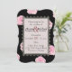 Pink Cabbage Roses and Black Lace Wedding Invitation