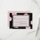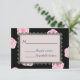 Big pink cabbage roses are splashed across a black background on this modern, romantic design. The center inset is surrounded by black heart-shaped lace. All text is easily customized.