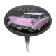 Art work of a Classic pink 1950's Cadillac from the rear end showing the classic high iconic wings that the classic American Car is well known and loved for..