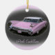 Art work of a Classic pink 1950's Cadillac from the rear end showing the classic high iconic wings that the classic American Car is well known and loved for..